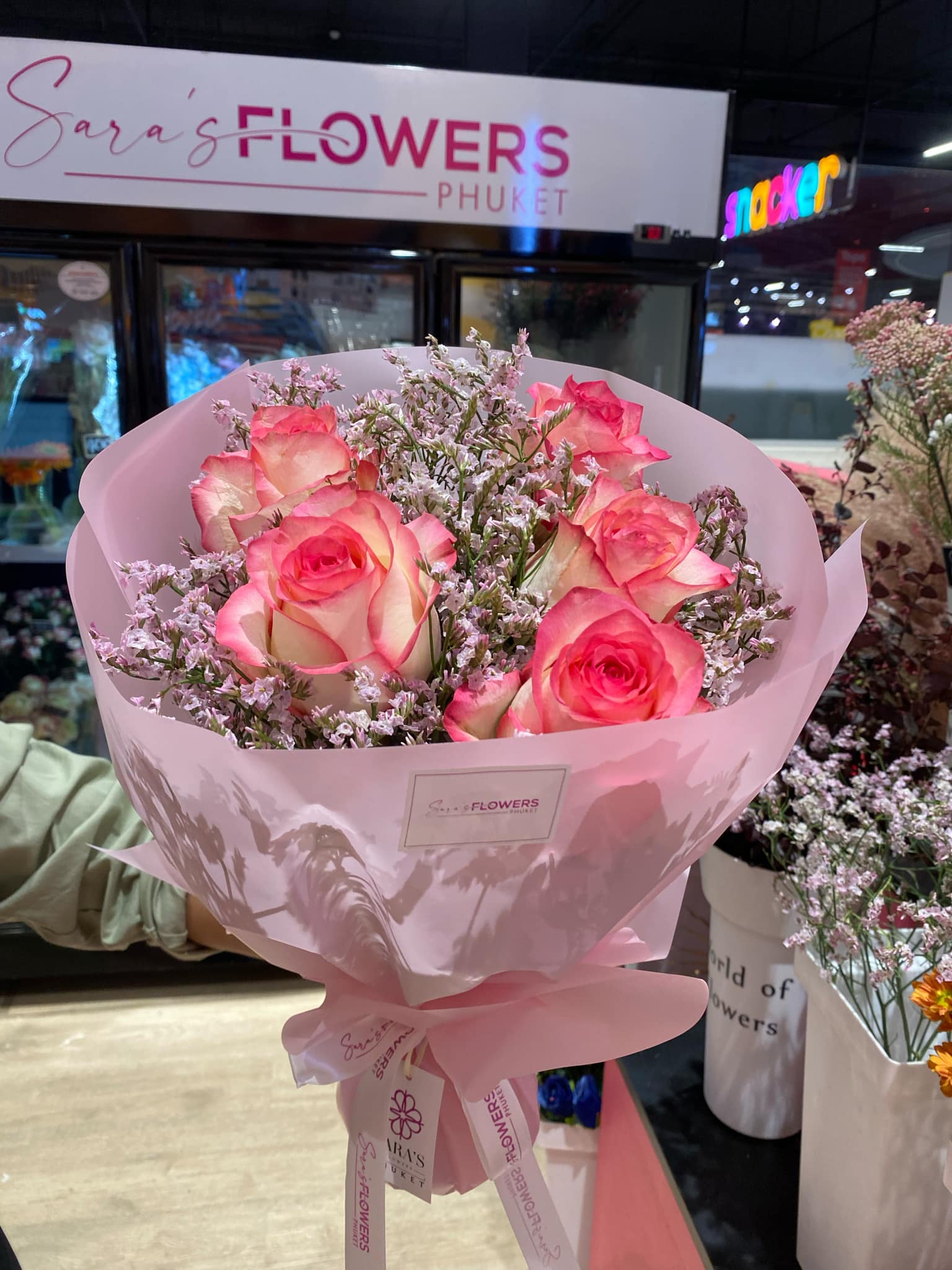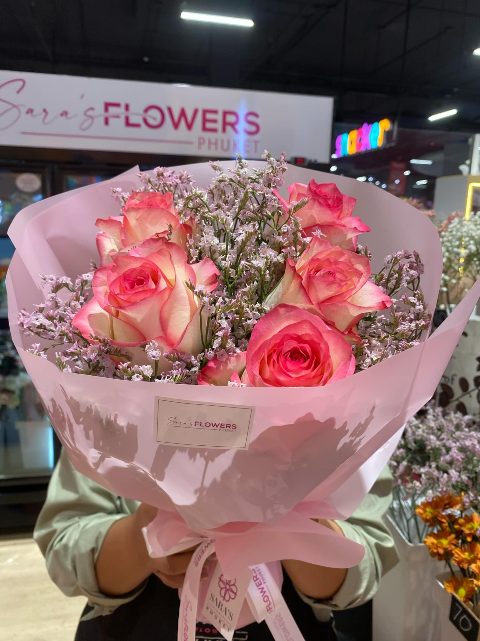 Whispers of Pink is a charming bouquet bursting with soft romance. Featuring blush pink roses that whisper grace and sweetness, playful two-tone lisianthus blooms, and delicate lavender statice for a touch of texture and memory. Wrapped in pastel pink with a gentle ribbon, it’s the perfect way to say “you’re special” with a wink—ideal for first love, a sweet thank-you, or just because.