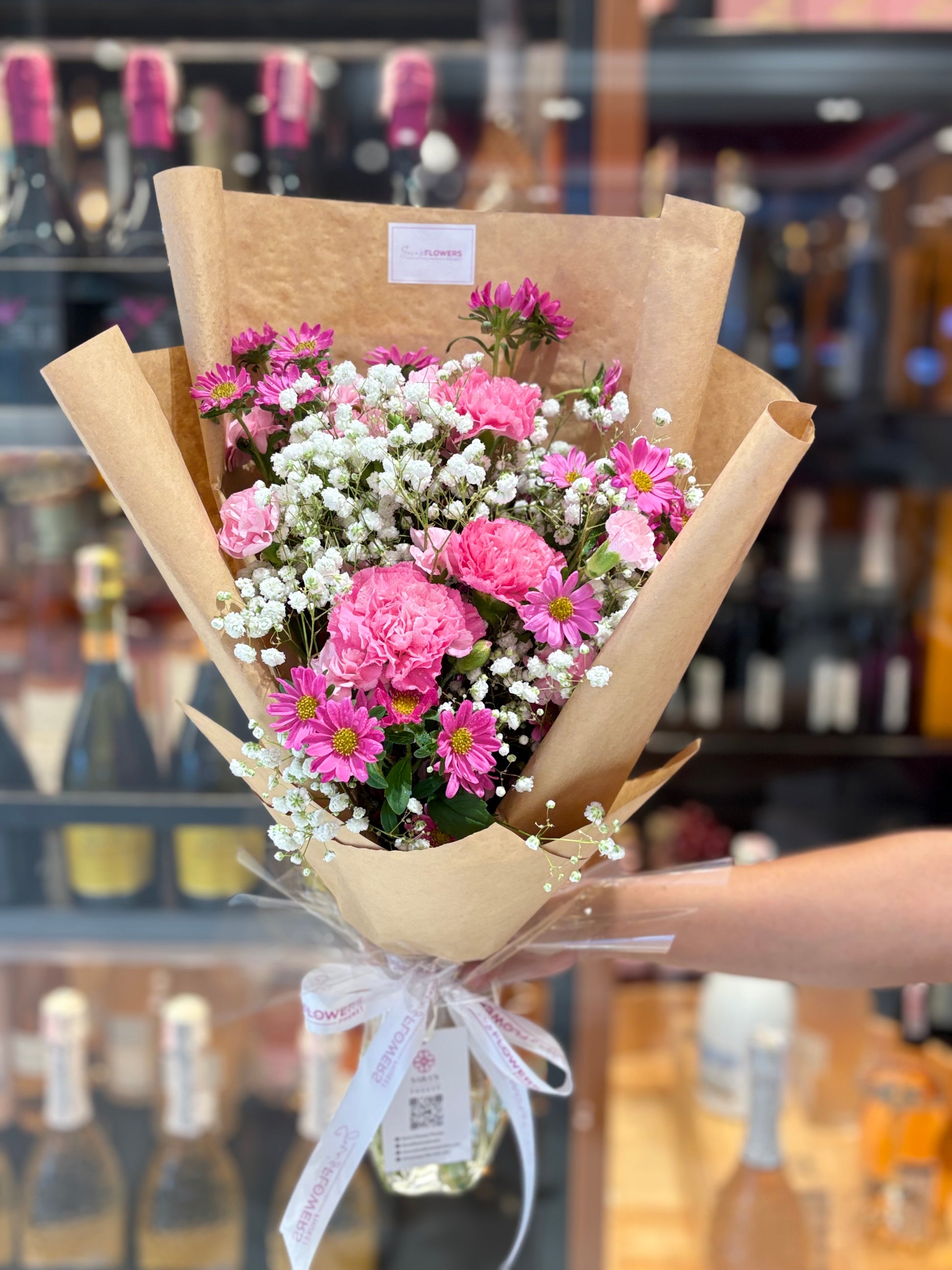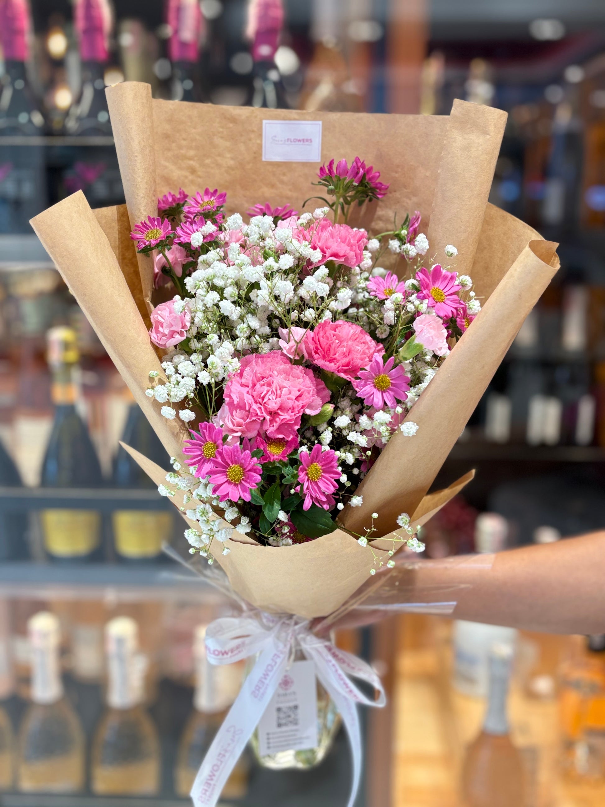 Oh, Mum! is the perfect bouquet for any occasion. Featuring beautiful and vibrant Mum flowers, along with delicate Carnations and babies breath, this bouquet will surely brighten up anyone's day. With its combination of colors and textures, it's a gift that will be cherished and admired by all who receive it.